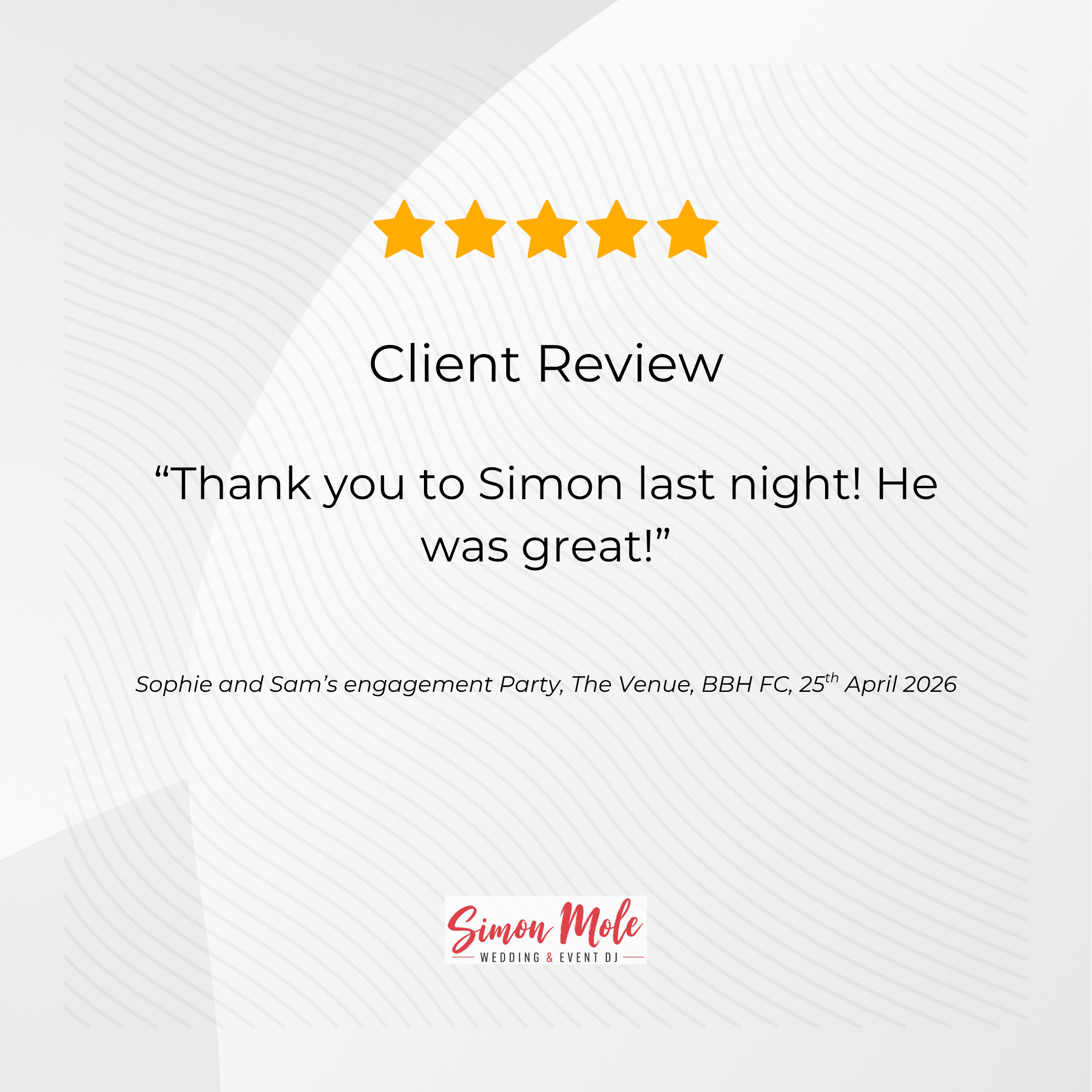 We are DJing some very special events this year. In 2025 and 2026, Simon has DJ’d many weddings, 50th and 60th birthday parties, corporate events and festivals, as well as some awesome XMAS parties.